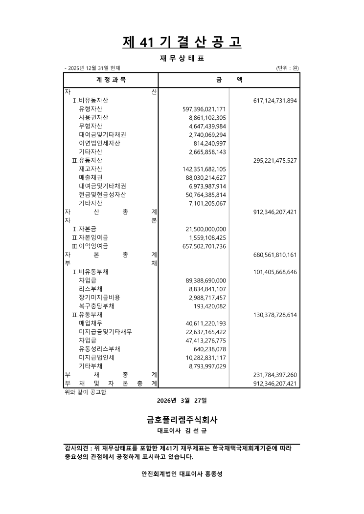 제41기 결산공고